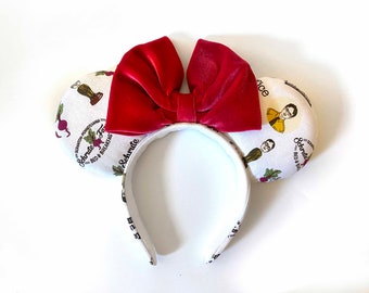 My ears are amazing! I have always loved this print, and I was so happy to find out I could get it in ear form. I also love that I was able to get the design with my two favorite classic Disney movies. The owners were great in answering my questions quickly and making sure that it turned out the way I envisioned. I wanted a smaller yellow bow on top of the original red, and they made it happen.