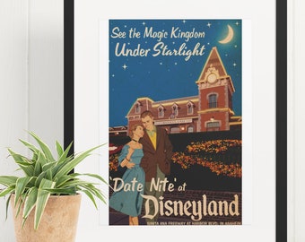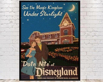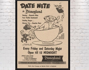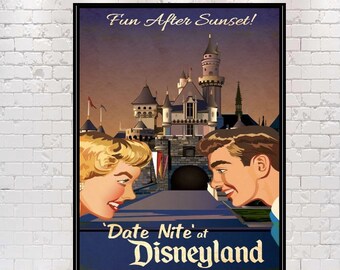 Disneyland Vintage Poster, Disney Poster, Disney Art Print, Disneyland Print, Disneyland Vintage, Date Nite, Vintage Disney Print