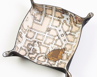 Square All Rolled Up Dice Tray "Dungeon Grey" megadungeon geomorph map illustration theme