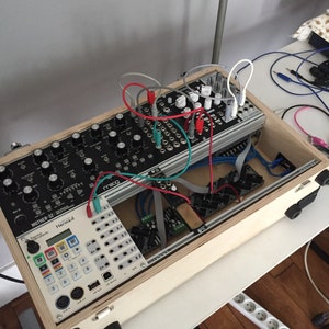 Eurorack case 88hp rails x 1 row. psu and flying busboard with 12 sockets included. solid case builded with care, if you have any questions feel free to ask!