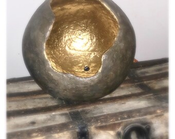 * Made to order!!!takes about one week! Concrete sphere sealed and water proofed. Made to order this is for a large size sphere. Upon purchase you can specify if any color (I.E. gold/silver etc. ) you would like for the inside of sphere as well! This Can be done smooth or ridged depending on preference!