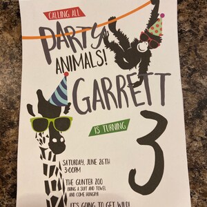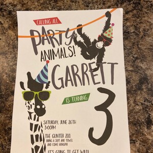 Party Animal Birthday Invitation | Zoo Birthday Invitation | Party Animal Printable - 5X7 with *bonus reverse side"