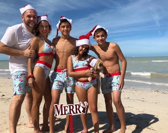 Holiday swimwear,santa claus bathing suits, custom swimsuit, matching swimsuits, kids swim suit, holiday swimwear, christmas swimsuit