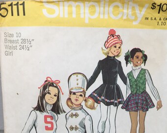 vintage Simplicity 5111 pattern, girls' cheerleader majorette, ice skating costumes, size 10, breast 28.5, waist 24.5, 1972, circular skirt