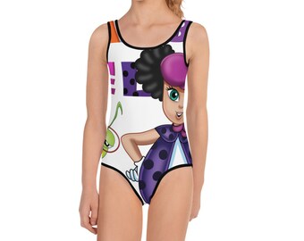 Girls swimsuit,Kids One piece swimsuit,Girls bathing suit,Girls black swimsuit,Feminist,Girls swimwear,Girl power,Simone black