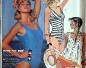 Vintage 80's McCall's 2535 Sewing Pattern Misses Swimsuits Bathing Suits Size 18 40 Bust Uncut FF 1980's Fashion