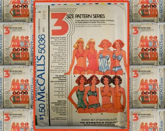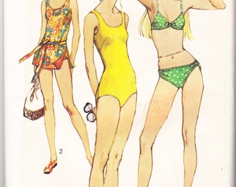 Vintage 1970's McCalls 5036 swimsuit pattern 2 piece and one piece bathing suits size 8-10-12 bust 31.5-32.5-34" 1976