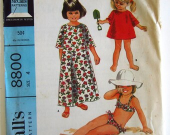 Little Girls Bathing Suit and Beach Dress 2 Lengths Size 4 Breast 23 Waist 21 Vintage 1960s McCalls Pattern 8800 UNCUT