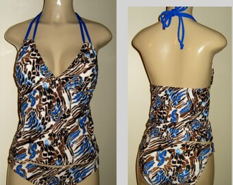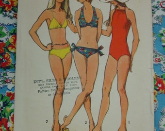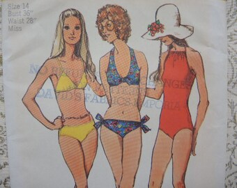 Vintage 1970s Swimsuit Pattern, Halter Top Bikini Swimsuits, One Piece Bathing Suits, Size 12, Bust 34 Inches
