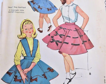 McCall's 1901 Girl's 50s Skirt Pattern, Circle Skirt with Halter Dachshund Dog Applique Transfer, Ruffle Skirt Size 10 Breast 28 Waist 24 in