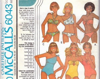 Vintage 1978 McCall's 6043 Retro Set Of Bathing Suits - For Stretch Knits Only Sewing Pattern Size D 12-14-16 Bust 34"-36"-38" UNCUT
