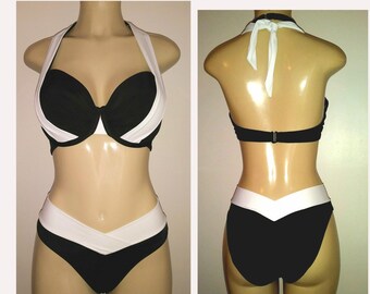 High waist bikini bottoms high leg bikinis swimwear custom made black women's high-waisted banded bikinis swimsuits bathing suits plus size