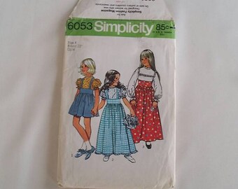 Vintage 1973 Simplicity pattern 6053 child's dress size 4, breast 23, waist 21, hip 24. complete and uncut