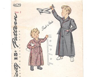 1940s Girls & Boys ROBE ~ Vintage Sewing Pattern ~ Simplicity 4629 ~ Size 2 Breast 21 Waist 20 ~ Double Breasted Front Button ~ Pockets