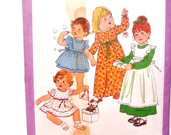 Vintage 1977 Simplicity Toddler Dress and Pinafore Pattern #8279 - Sz 1 (Breast 20 - Waist 19 1/2) - Cut and Complete