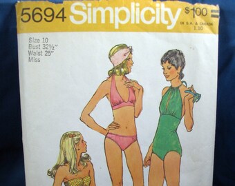Vintage Simplicity Pattern 5694 Misses Bathing Suits Size 10 - 1973