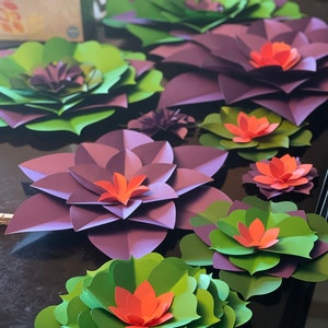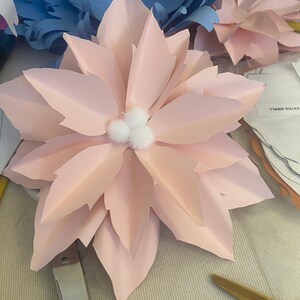 ♥ XL Iris Unicorn style giant paper flower as shown with leaf. Plus petal perfect 8 sided base in 3 sizes.