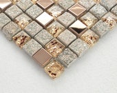 Glass and Stone Mosaic Tiles 11.7"x11.7"x8mm/Sheet -638, Rose Gold and Gray/Mixed Finish, Beautiful Backsplash Tile for Bathroom and Kitchen