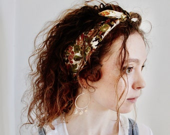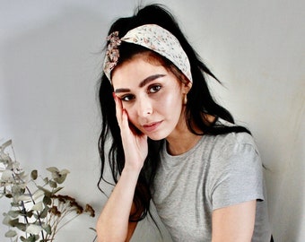 Screen Printed Lightweight White Cotton Summer Scarf | Boho Headband | Cotton Hair Scarf | Square Boho Scarf | Boho Head Wrap