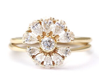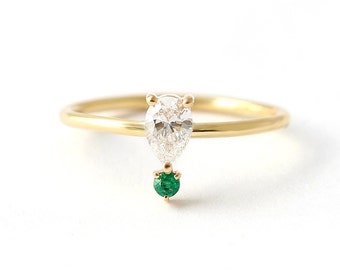 Pear Diamond Engagement Ring, Emerald Engagement Ring, Diamond Ring, Emerald Ring, Pear Cut Diamond Ring, Tear Drop Engagement Ring