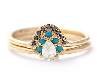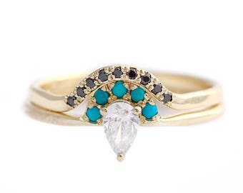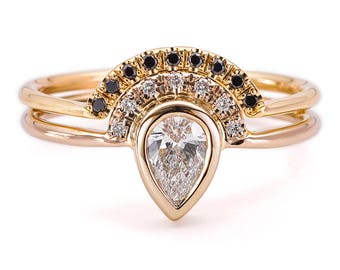 Black Diamonds Bridal Set, Bridal Wedding Set, Three Rings Set, Alternative Wedding Set, Triangle Diamond Ring, Black Wedding Ring