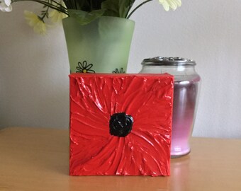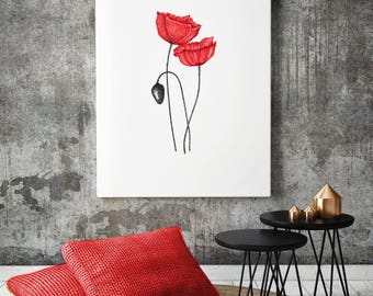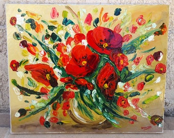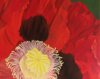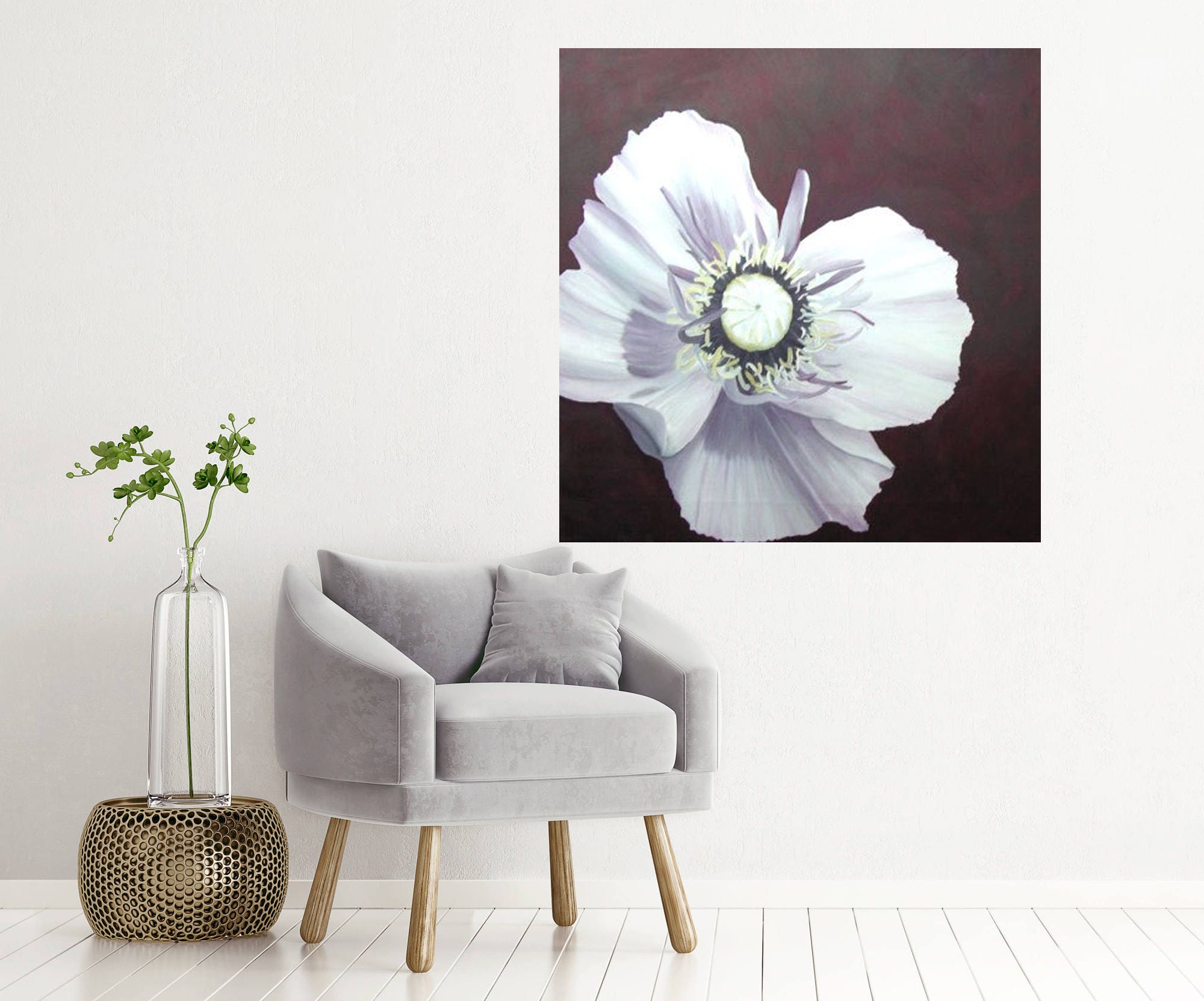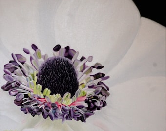 White Poppy Painting - Poppy Flower Original Oil Painting Floral Wall Art Canvas Purple & White Macro Flower