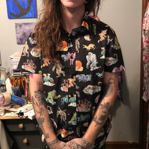 Cryptozoology has never been classier! Introducing this awesome button up short sleeve dress shirt. 100% Cotton poplin with a modern fit we spent years perfecting. These gorgeous cryptids are illustrated by Julian Farmar-Bowers just for Pretty Snake! All of your friends are here: Sasquatch, Bat Boy, Abominable Snowman, Loch Ness Monster, Thunder Bird, Death Worm, Chupacabra and more!
