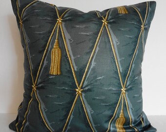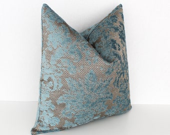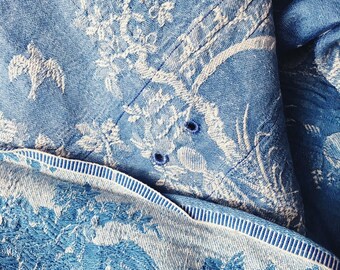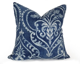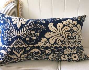 See moreBlue Damask, French Country Throw Pillow, Antique Material, Handmade Pillow, Zipper Closure, 20 Inch Square, Square Pillow