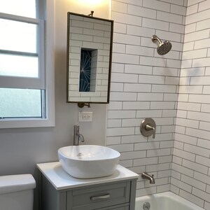 I was looking for a certain size vanity mirror as my lights hang down low and bounce too much light off other mirrors. Plus I wanted unique and some rustic charm. This mirror ticked ALL the boxes. Plus seller was so kind and added more silver to the frame (vs gold) as I have chrome throughout my bathroom. Mirror was well packaged and ready to hang. Has some weight to it so not a cheap feeling mirror at all. I just love how my bathroom turned out in my old little craftsman style home. This mirror "made" the room. Tons of compliments. Someday the vanity will be updated...but had to work with the budget I had. Small things can make it feel updated and fresh. Such a beautiful well bought piece to last for years.