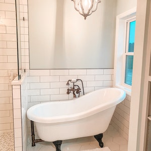 Your looking at a custom shower curtain by Halstrom Home, for Farmhouse Fare. In my humble little bathroom. I had an espresso and black kind of batik before. Imagine my delight. The curved room is secured into studs and behind is a non PVC and a soft PVC behind so it does not have that plastic smell. So beautifully designed, completely unique and elegant but comforting. I could seriously lay underneath this. It feels so soft, its homey and fancy. But not too fluffy for the man in my home. He appreciates the work and time involved in a piece like this. My 1st purchase from Farmhouse Fare,certainly not my last. Thank you, Shar