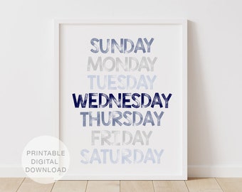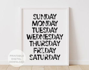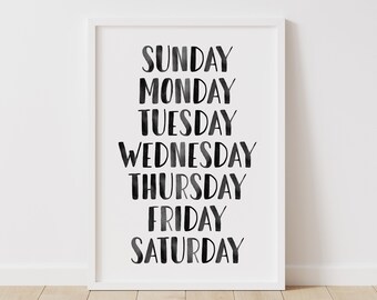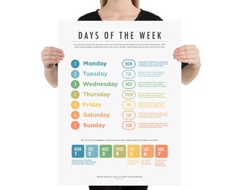 French Days of the Week Poster - Les jours de la semaine en Francais, 11 X 14