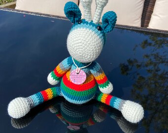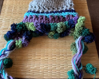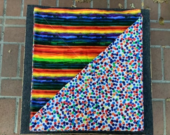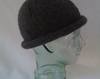 Knit Baby Hat Hand Made in Rainbow Colors Stripes Roll Brim Newborn to 6 Months Hat Orange Yellow Blue Red