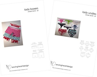 PDF pattern. Double set. Lady Undies/Boxers Lingerie. Size 32-34 - 60 (XS - 4XL)