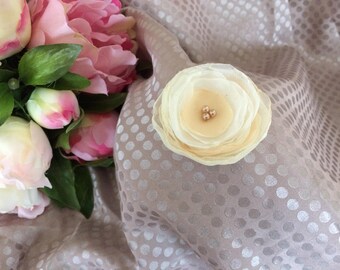 Flower 5 cm in beige/ivory and white chiffon with pearls