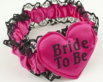 Bride To Be Garter Heart Shaped Pink Garter With Black/White Laces Hen Night Garter Wedding Garter Bridal Shower Garter Women's Lingerie