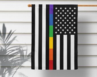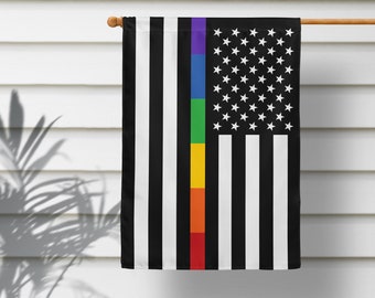 The thin Rainbow Line vividly pops against the modern starkness of the black & white, monochromatic American Flag. A beautiful and impactful statement that would look amazing outside any home or business to show your inclusiveness and acceptance of all. Combine it with your traditional Pride Flag or fly it on its own!