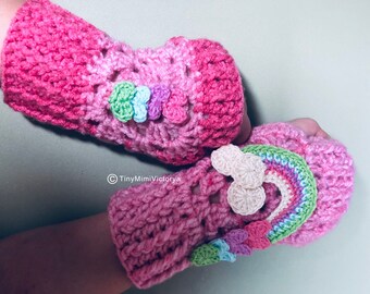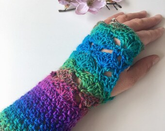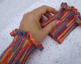 Rainbow fingerless gloves, texting gloves, wrist warmers, OOAK gloves, crochet accessories, unicorn gloves, fall fashion gloves