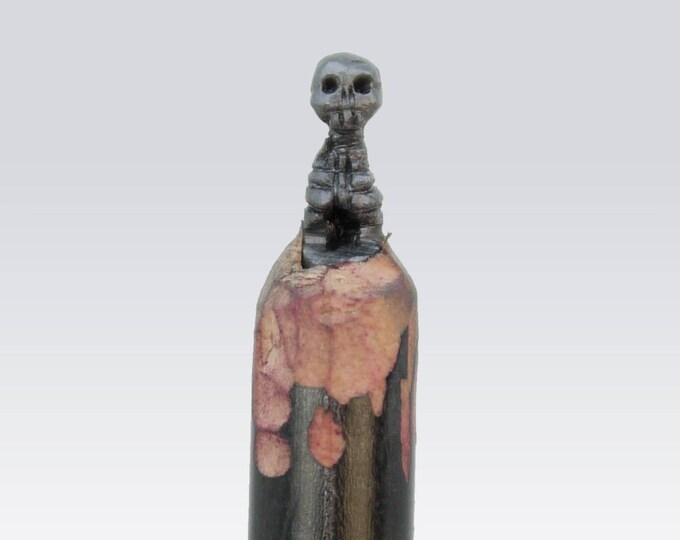Pencil Sculpture - Skull - Simple, hand-carved micro sculpture - Graphite