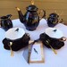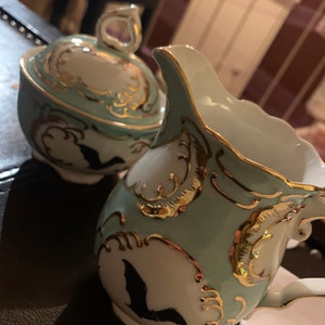 FREE SHIPPING - Gorgeous Gold and Green, Blue or Pink Porcelain Bat Tea Set, 7 or 11 Pieces. Durable and Food Safe.