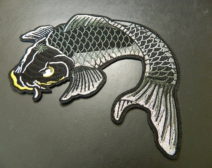 Large Black & Silver Koi Fish Embroidery Patch - Iron On Applique (7.2x4.9" inches)