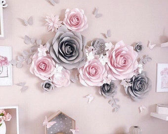 See morePaper Flowers Wall Decoration - Large Paper Flowers - Paper Flower Wall Decor - Paper Wall Flowers - Nursery Wall Decor