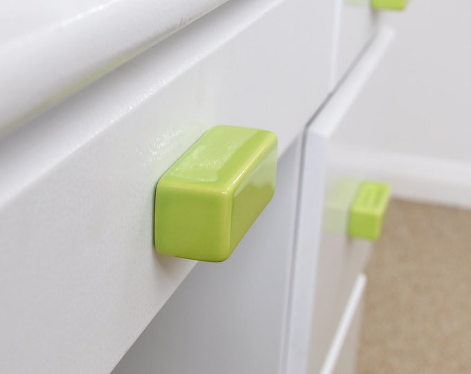 Green Lime Rectangular Ceramic Knobs, Handmade Dresser Drawer Pulls, Kitchen and Bathroom Cabinet Remodel Hardware, New Home Gift