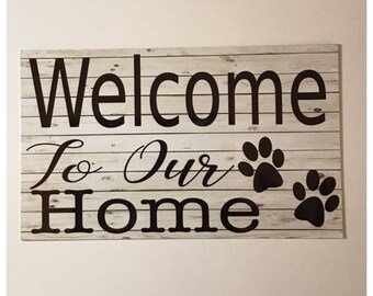 Welcome To Our Home Paw Sign Wall Hanging or Plaque House Home Paws Dog