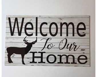 Welcome Stag Deer Sign Wall Hanging or Plaque House Home