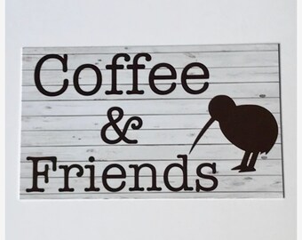Coffee & Friends with Kiwi Bird New Zealand Tea Sign Wall Plaque or Hanging Kitchen