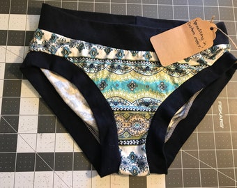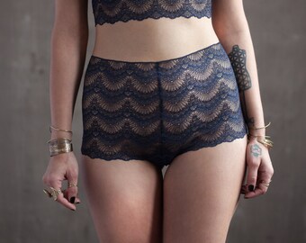 Mid Rise Navy Blue Lace Panties with Organic Cotton Liner