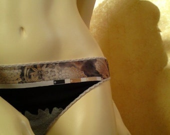 Black, grey thong with flowery print