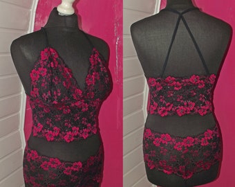Pink and black lingerie set