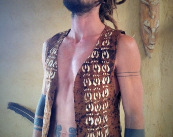 Tribal Vest From African Mud Cloth Brown Patterns