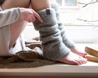 Boiled wool gray leg warmers, felted organic wool leggings, knit leg warmers, knit accessories womens